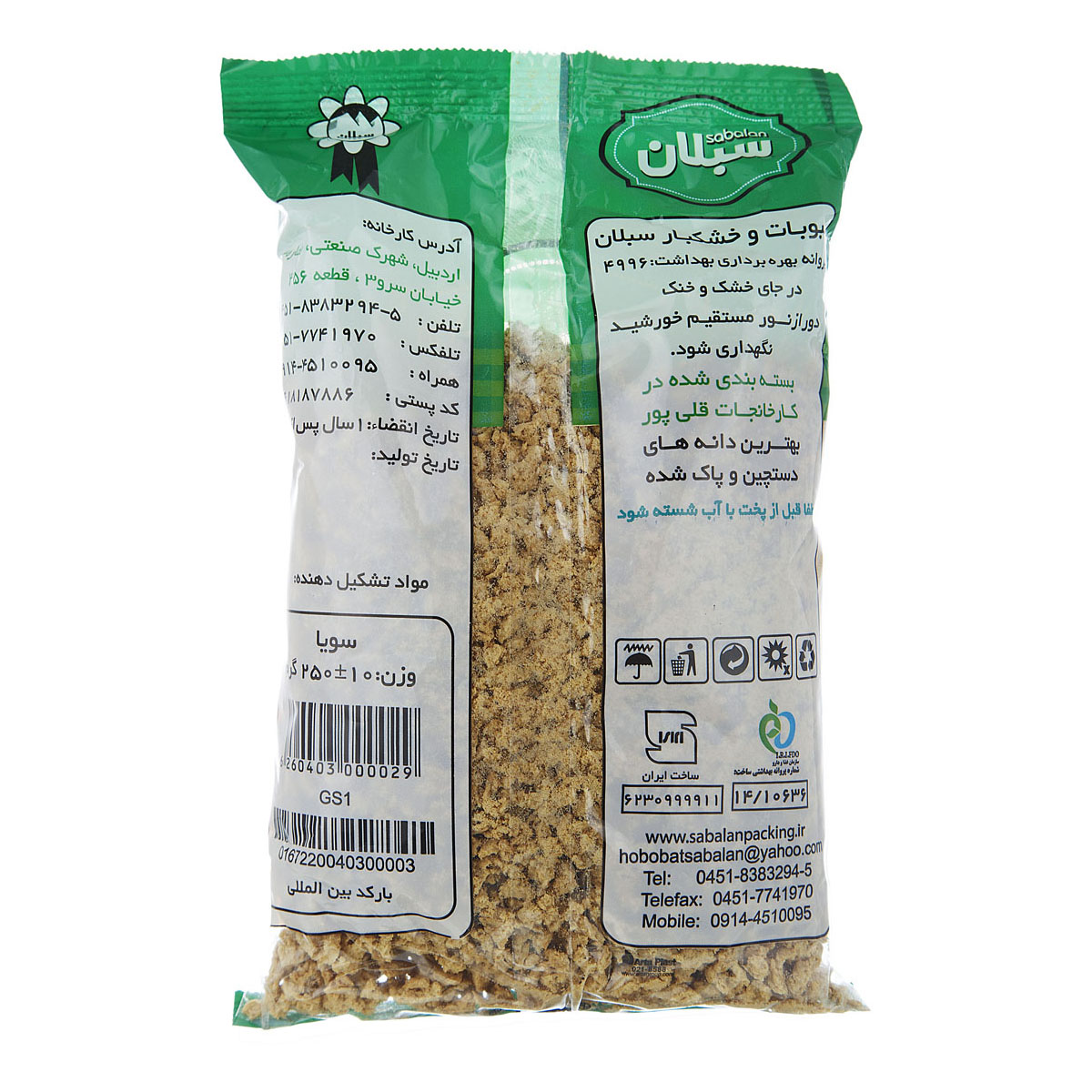 اولین کسی باشید که دیدگاهی می نویسد “سویا ریز 250 گرمی سبلان”